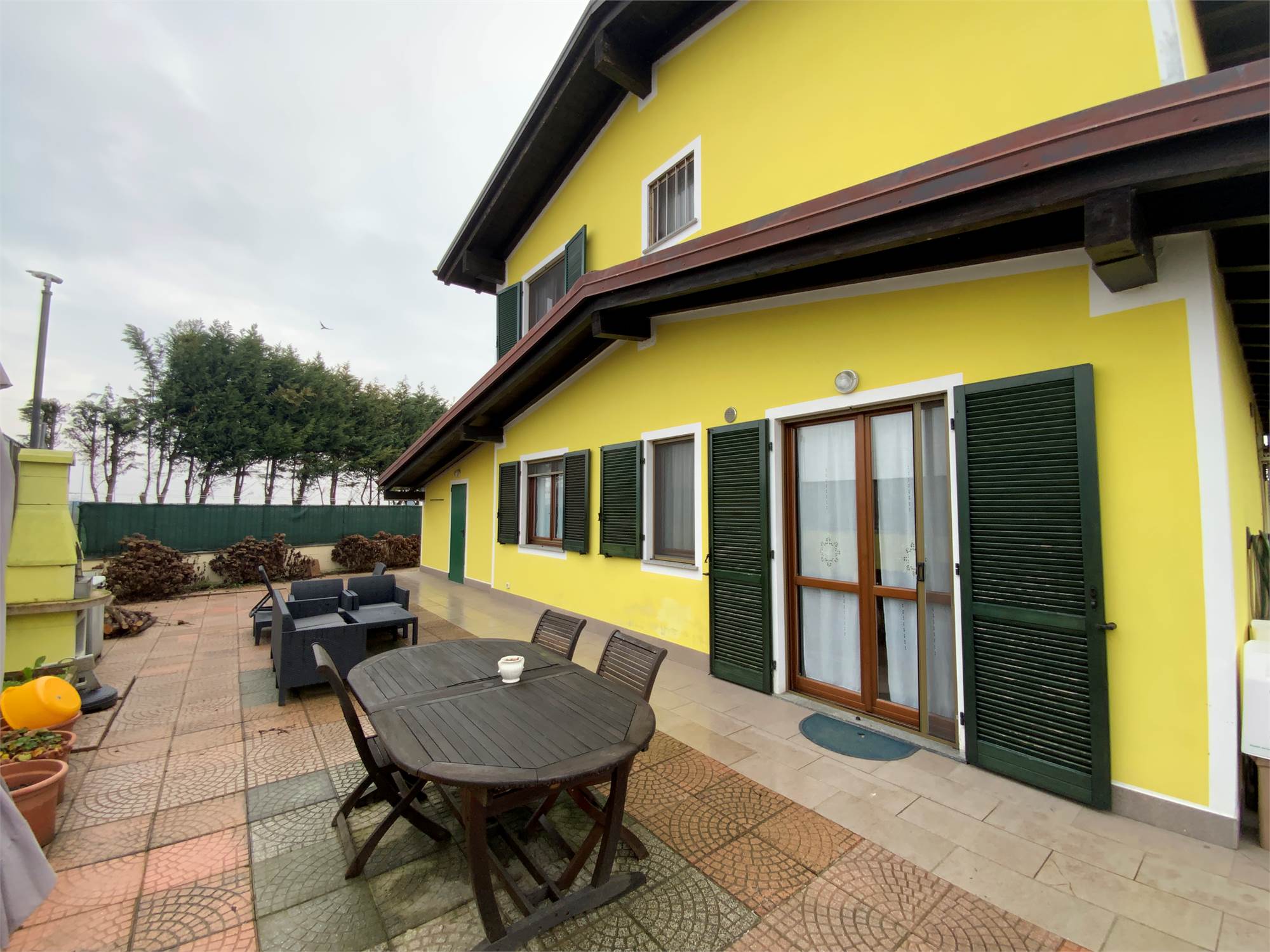Biandrate, Villa singola di recente costruzione, libera su quattro lati e disposta su due livelli. Autorimessa doppia e area di cortile/giardino. L'abitazione è composta, al piano terra dall'ingresso diretto nell'ampio soggiorno, cucina abitabile dalla quale si ha l'accesso al giardino, bagno e camera/studio. Al primo piano la zona notte con camera, bagno e camera matrimoniale con accesso all'ampio terrazzo. L'immobile è dotato di impianto di allarme e zanzariere.