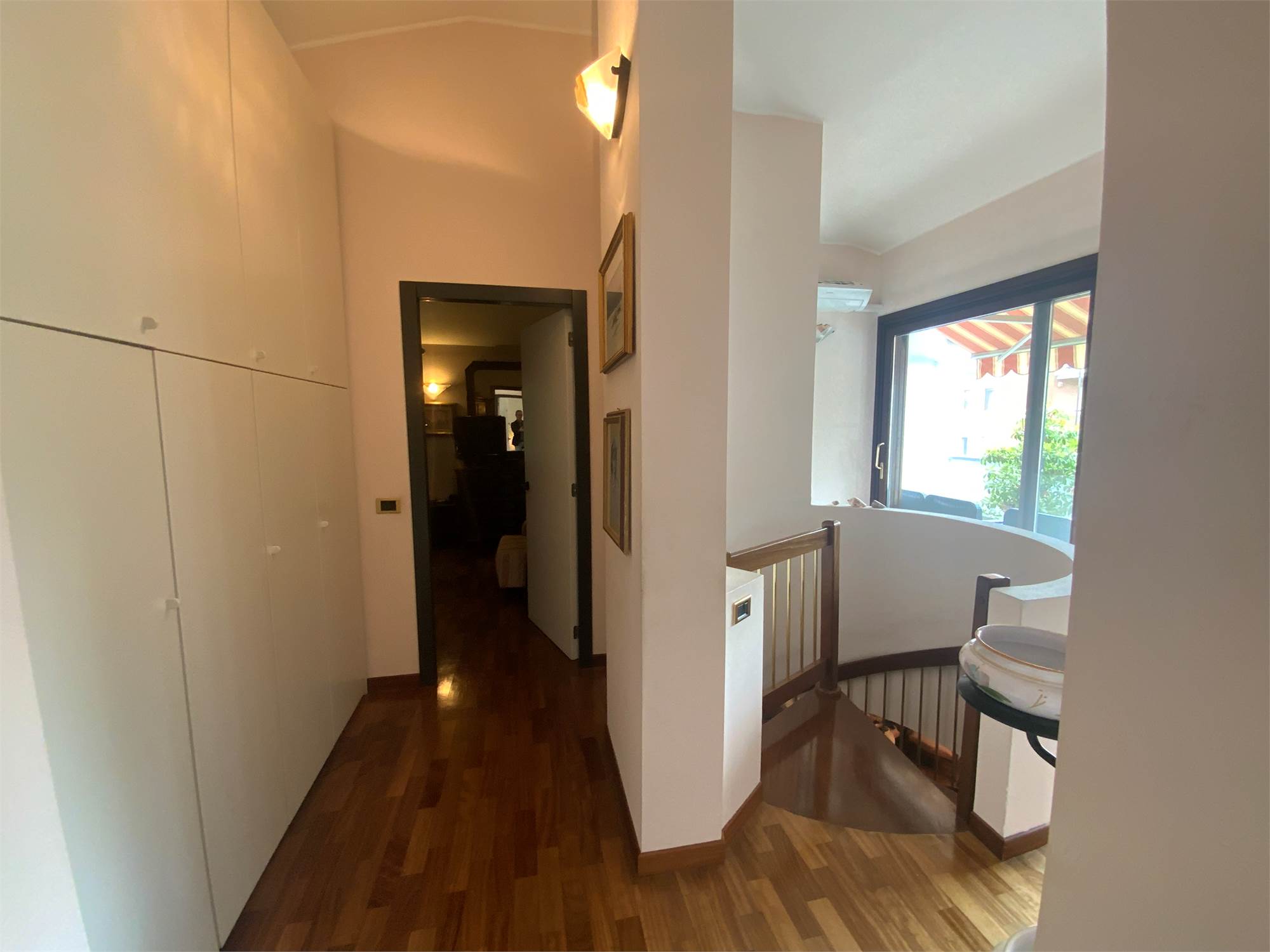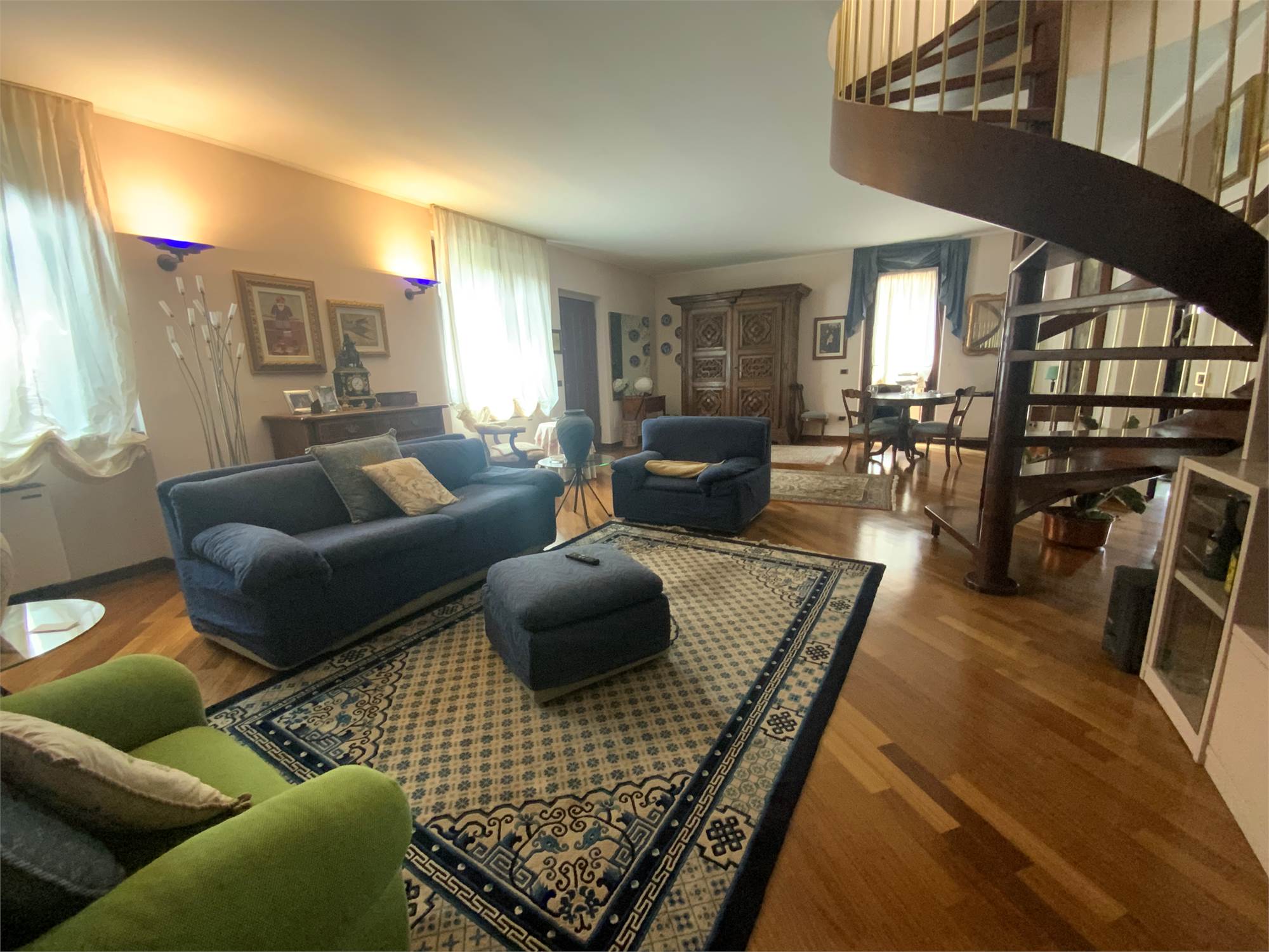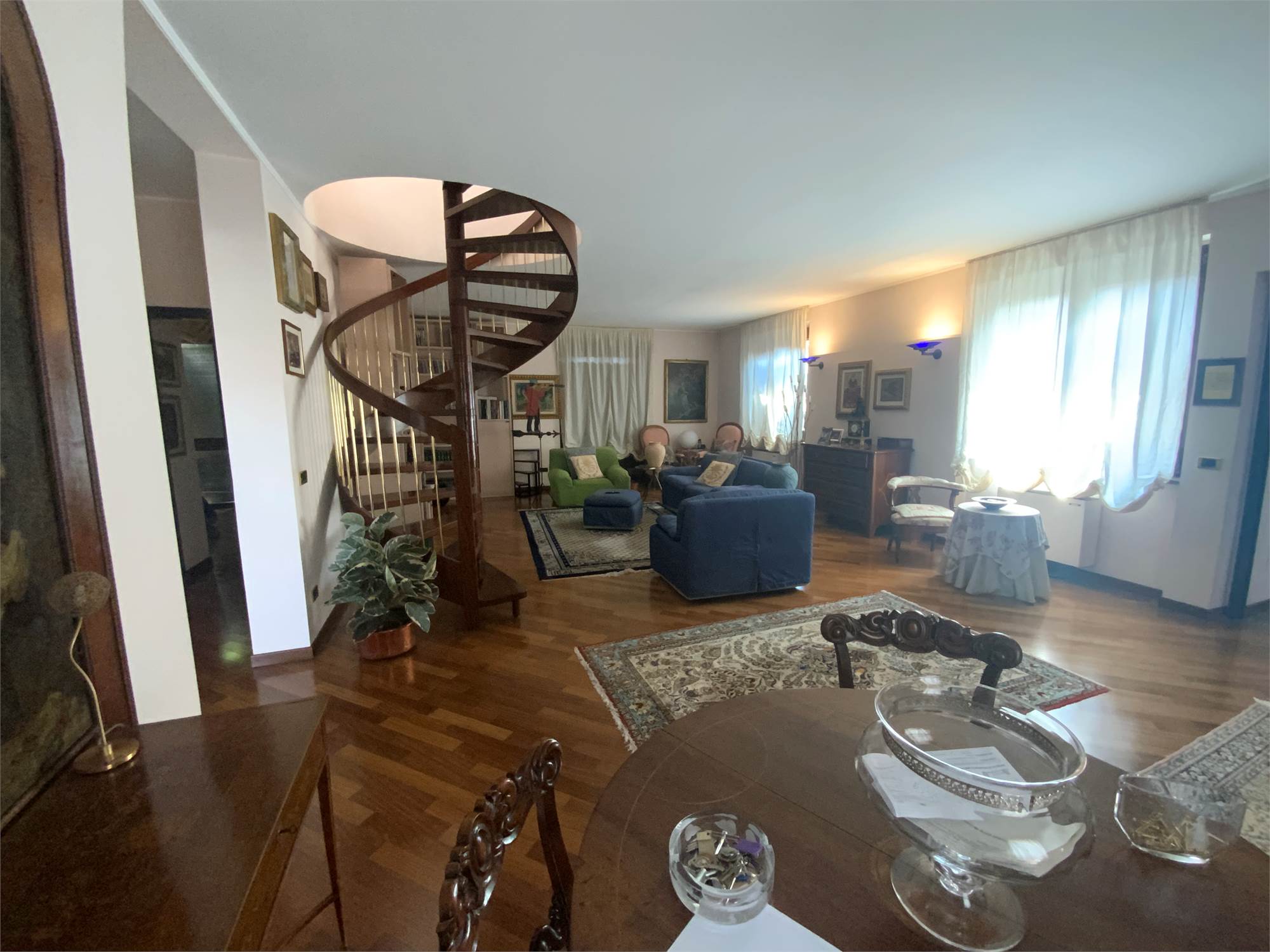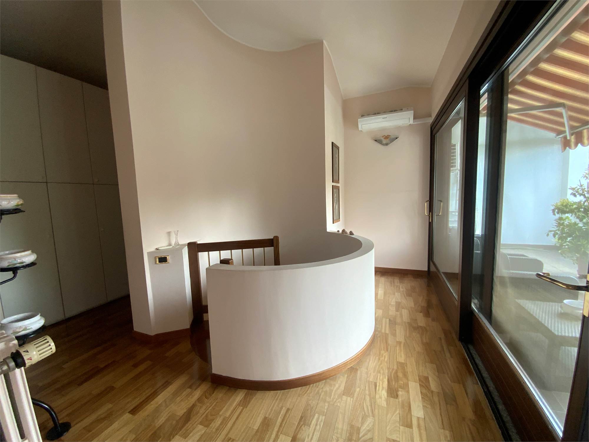 In zona San Martino, lontana dal traffico cittadino, circondata dal verde, villa bifamiliare su tre livelli con al piano rialzato un appartamento di tre locali oltre ai servizi, al primo e al secondo piano si sviluppa il secondo appartamento duplex di 5 locali con doppi servizi. Entrambi gli appartamenti godono della comodità dell'ascensore e di ampi terrazzi. Al piano seminterrato ci sono le cantine e autorimessa con 4 posti auto. La parte esterna della proprietà è adibita a giardino ottimamente piantumata.